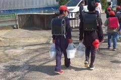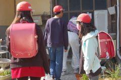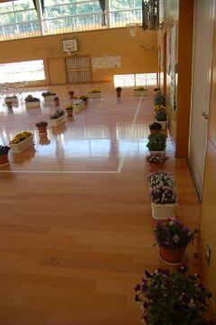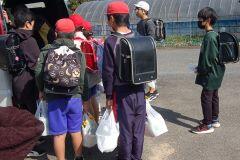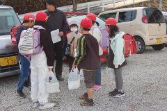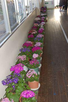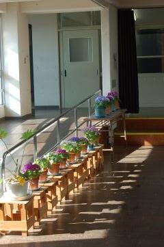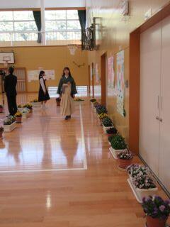 14:25、2階ホールに子どもたちが集合。今日は3年生~6年生の子どもたちが、地域ごとに登校班で「一人暮らしのお年寄りへの花鉢プレゼント」を行います。花鉢とハーブ石鹸、これまで子どもたちが取り組んできたものです。