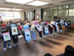 6年生と過ごす日々も残りわずかとなりました。6年生への感謝の意を表し、ともに小学校での楽しい思い出を作る送別遠足を行いました。前半は学校で「縦割り班のレクリェーション活動」・「6年生を送る会」を行い、後半は花海好公園まで出かけました。