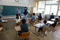 給食準備後、給食を食べながら、渡邉先生の話を各教室で聞きました。給食を作っている様子などを話していただきました。