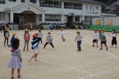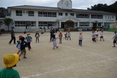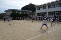 今日は雨天のため延期していた3,4年生の全員遊び。昼休みにボールを使って元気に遊んでいました。
