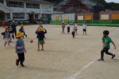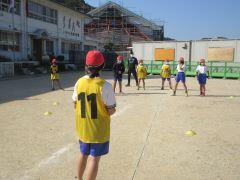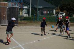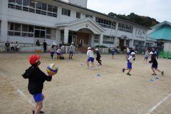 今日は1,2年生でドッジボール。1年生ははじめてする子どももいましたが、すぐにルールを覚え、楽しく元気に活動しました。