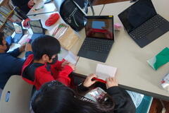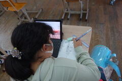 6年生最後の物語分「海の命」。登場人物の行動の疑問を解決するために、文章や経験を手がかりに話し合いながら深めていきました。