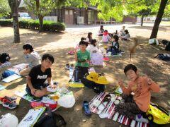 2年生から5年生は家で自分でおにぎりを作ってきました。のり、具材、大きさも自分の好みで、とてもおいしそうに食べていました。