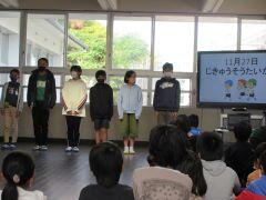 朝から地区児童会、高学年が進行しながら、登校班や地域でのすごし方、冬休みのくらしについて確認を行いました。あと2週間で冬休みです。