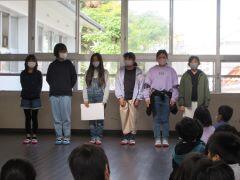 2学期がんばったこと、成長したこと、思い出などと冬休みにやりたいこと、これからの目標などを発表しました。6人ともとても上手に発表することができました。