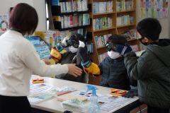 2年生は、生活科で自分たちが作ったおもちゃで遊んでもらおうと「1年生を招待して遊ぼう」を企画しました。遊び方を説明して実際に遊んでもらいました。1年生はとても楽しく遊んでいました。