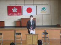 教科書授与、代表に渡しました。大切に使ってしっかりと勉強しましょう。