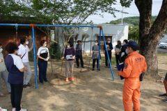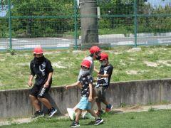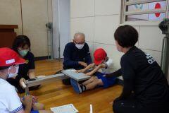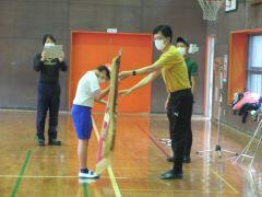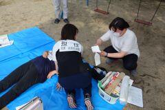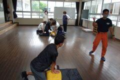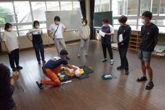 今回は、消防署から指導にきていただき、心肺蘇生法の講習、練習と大けがへの対応のシュミレーションを行いました。いざという時の役割、対応を確認することができました。