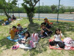 その後、みんなで宮津のグラウンドまで歩き、縦割り班で一緒にお弁当を食べました。短い時間ではありましたが、6年生との楽しい思い出を作ることができました。