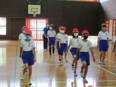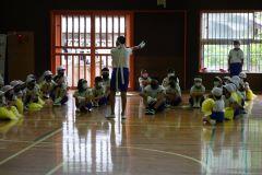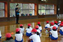 今年も上天草地区交通安全協会講習指導員の植田浩蔵様に来ていただき、交通教室を実施しました。残念ながら雨のため、体育館での実施となり、2校時は1年生から4年生まで実施しました。