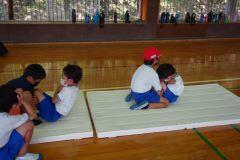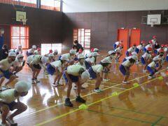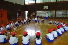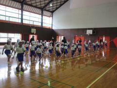 1年生は、鬼ごっこ対決をしました。みんな笑顔で体育館いっぱい走り回りました。