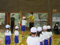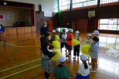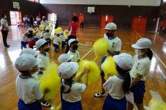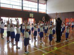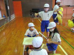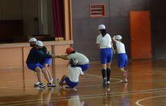 まず、学校でお別れ集会を行いました。内容は、各学年と6年生との対決です。