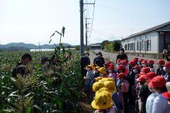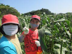 1,2校時、地域の方のご協力により、とうもろこし収穫体験を行いました。