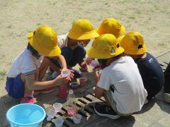 色水を作って記念撮影。とてもきれいな色ができたと見せてくれました。