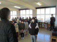 2校時不審者侵入を想定した避難訓練を実施しました。放送を聞いて、静かに避難することができました。その後、上天草警察署の方からの話を聞きました。最後にお礼の言葉を代表児童が伝えました。その後、先生たちも不審者対応について教えていただきました。