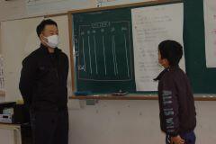 今回は上天草警察署のご協力・ご指導のもと実施しました。警察署の方からは「子どもたちが静かに避難できたことがとてもよかった」、「日頃のあいさつが犯罪の抑止につながり、いざという時に大きな声が出せる力になる」等の話を伝えてもらいました。