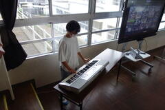 始業式の最後に、6年生の伴奏で、校歌斉唱をしました。