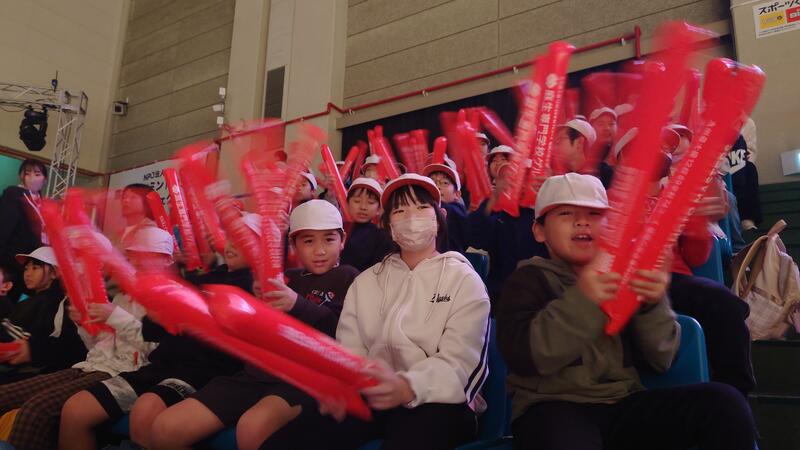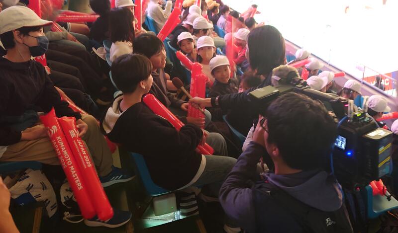 11月11日(火)に、熊本県立総合体育館で開催されている国際バドミントン大会に4・5・6年生で参加してきました。世界トップレベルの一流選手のプレーを間近で観て、子供たちも大変感動し盛り上がっていました。日本選手等の得点場面では、赤い応援棒をみんなで鳴らしながら声援をおくりました。また、数名の子供たちはRKK取材班のインタビューを受け、応援している選手やスピード感のあるプレーに感動した話などをしていました。スポーツを「する・観る・支える・知る」とありますが、貴重な「観る」経験ができたイベントでした。