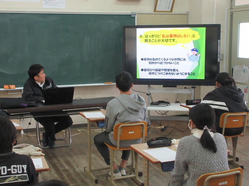 4日(木)の5時間目に、6年生は、上天草市警察署生活安全課の川野様の講話を聴き、薬物についての正しい認識をもつとともに、薬物売買などと関係の深いスマホ利用について理解を深めるこ