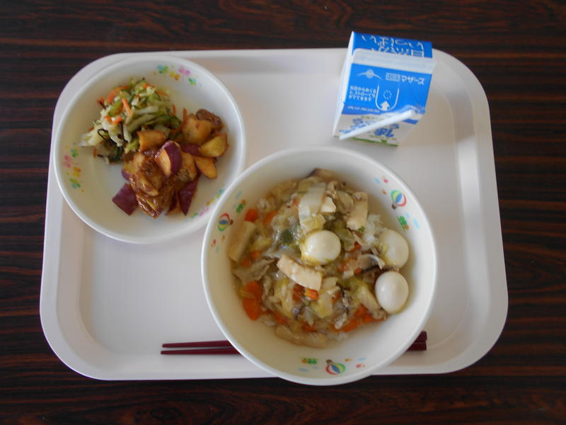 中華丼 牛乳 塩昆布和え キャラメルポテト