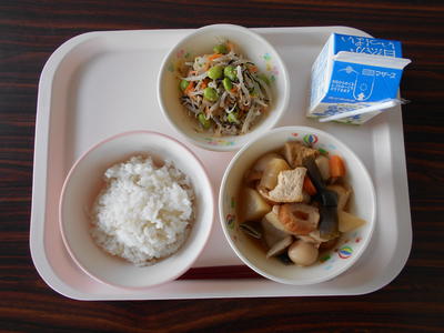 麦ご飯 牛乳 ひじきと枝豆のサラダ みそおでん