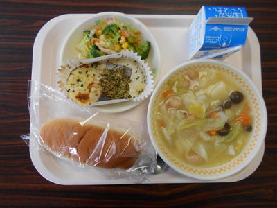 ミルクパン 牛乳 ポトフ 魚のハーブパン粉焼き ブロッコリーサラダ