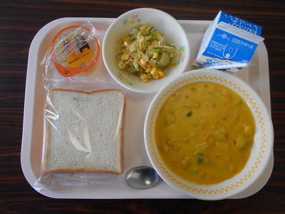 食パン かぼちゃシチュー 野菜サラダ ゼリー