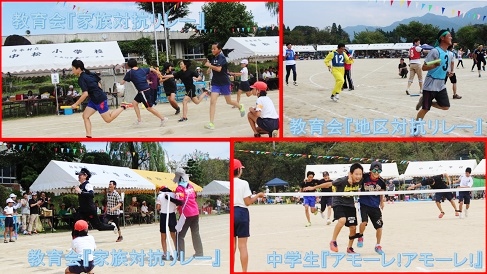 家族対抗リレーや地区対抗リレー、中学生競技では、中松小学校の卒業生も大活躍でした!毎年たくさんの中学生が中松小学校の運動会に参加してくれます。毎年卒業した子ども達の成長を見れることを職員も楽しみにしています。