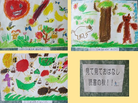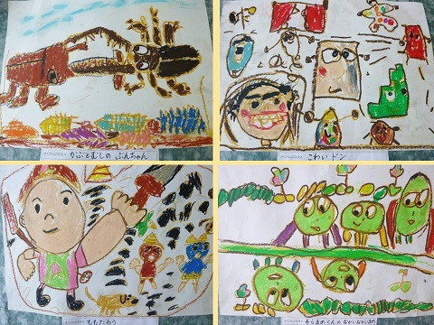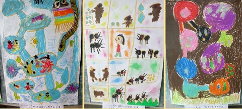 1年生では、図工の時間に、お話の世界を絵に描きました。お気に入りのお話を選んでかきました!お話を読んで、子ども達が感じたもの、イメージを膨らませたわくわくするようなお話の絵ができました☆