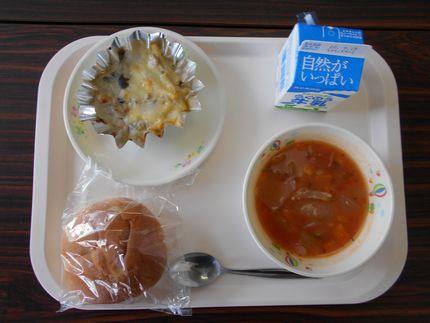 ミルクパン 牛乳 豆のトマトスープ 米粉グラタン かぽちゃムース