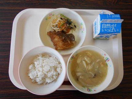 牛乳 麦ご飯 味噌汁 きんぴらごぼう いわしのみぞれに