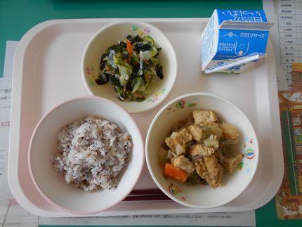 麦ご飯 牛乳 すき焼き風煮 海藻サラダ