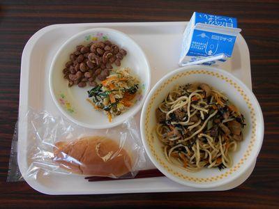 牛乳 ミルクパン クリーミースパゲティ アスパラサラダ みかん