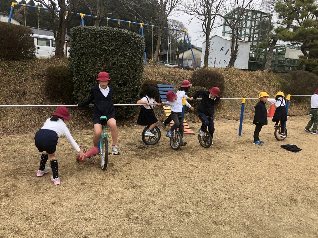 さて、終業式では一輪車の話題を持ち出し、あきらめないで続けることの大切さを話しました。今週の月曜日、学校集会の時に一輪車に乗れるかというお話をしました。校舎の片隅にあった壊れてさび付いていた一輪車をなんとか利用できないかと思い、修理にだし、ぴかぴかにしてもらいました。しかし、一輪車はあっても、だれも乗らない現実にちょっとだけ子どものやる気に火をつけようと試みたのです。集会のあとのお昼休みから、刺激を受けた子どもたちが一輪車に群がるようになりました。その翌日も翌日もお昼休み熱心に取り組む子どもが出てきました。そして木曜日にはなんと5m程乗れる子どもも出てきました。子どもの好奇心をすこし刺激するだけで、いろいろな化学変化が起きてきます。やってみようとちょっと思う事、あらためてだいじなことなんだなと思いました。来年は亥年。イノシシのように猪突猛進で好奇心に火を付け、新しい自分の姿をみつけてもらいたいなと思います。