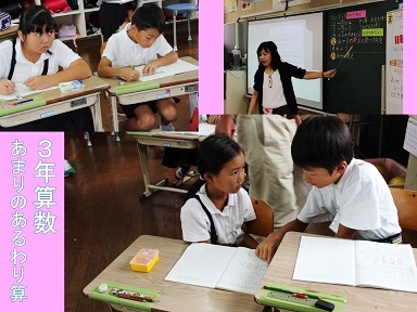 授業最後のふり返りの感想より「こんど、またあまりのあるわり算をとなりの人としてみたいです。」(3年T・Kさん)