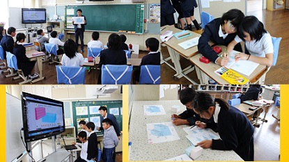 先週水曜日、5年生教室にて、授業研究会がありました。「2枚のブルーシートに12人、3枚のブルーシートに15人、さてどちらがこんでいるでしょう?」という問題と出合い、なんとかして答えを求めようと必死に取り組む5年生の姿が印象的でした。
