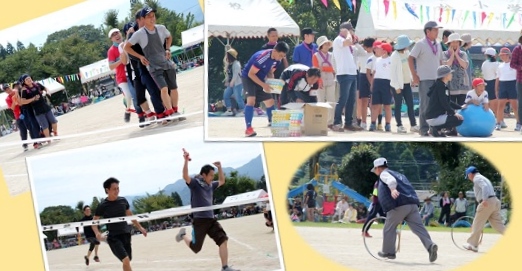これは教育会・消防団・来賓競技の様子です。たくさんの方にご参加いただき、大いに盛り上がりました!!子ども達が地域の方、お父さん・お母さん・おじいちゃん・おばあちゃんと一緒に参加できる競技もあり素敵な思い出になったと思います☆競技だけでなく、アナウンスで盛り上げてくださった方も♫来年度もたくさんのご参加、お待ちしています!