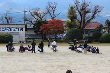 男の子も女の子も学年も関係なく、手をつなぎ大きな声でかけ声をかけ、大盛り上がり!昼休みの間は、日も差し込み気持ちの良い中思いきり遊ぶことができました。