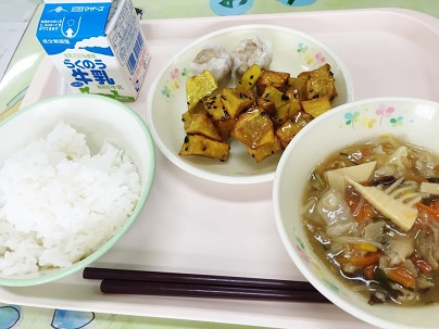 この日は中松小学校の3・4年生が収穫したさつまいもでサラダを作っていただきました。食感も良く、甘みもあってとてもおいしかったです!3・4年生、そしておいしく調理して下さった白水調理場の皆さん、ありがとうございました!!