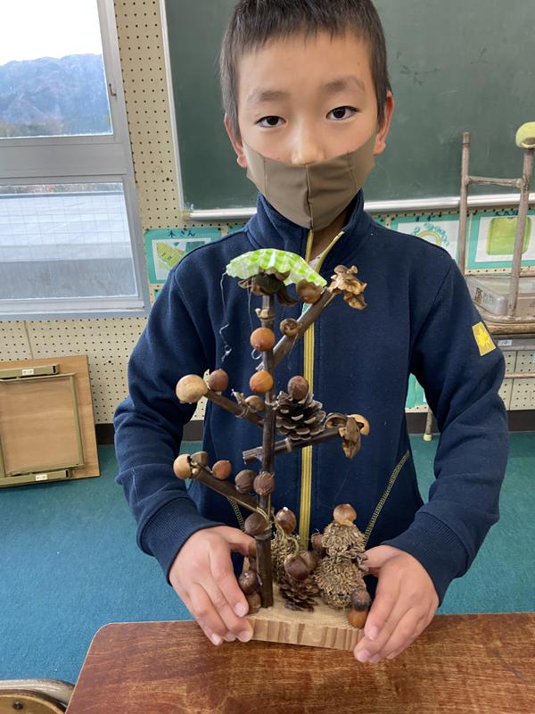 毎週、火曜日と木曜日の放課後は、地域の数名の方々に学校に来ていただき、「放課後子ども教室」が行われています。ほとんどの子が1,2年生の頃にお世話になったのではないでしょうか。昨日も、放課後職員室で仕事をしていると、放課後子ども教室の方が来られ、「どんぐりを使って素敵な作品ができたので見に来て下さい~!」とのこと。早速見に行きましたが、どんぐりや巨大マツボックリを使った素敵な作品が出来ていたので何名かの作品を紹介します^^!