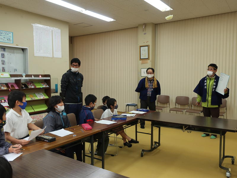 「神楽でお面をかぶるのはなぜですか?」「神楽の衣装はどんなものがあるのですか?」といった子ども達の質問にていねいに答えていただきました。