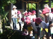 初めにお宮をぞうきんやほうきでそうじしました。けっこう
