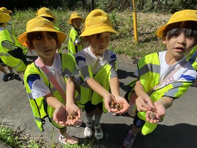 なんと、学校を出てすぐの「絵本の国」の見学をさせてもらい、そこでどんぐりを拾ってきたそうです^^!