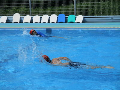 子どもたちは気持ち良さそうに平泳ぎの練習を頑張っていました。