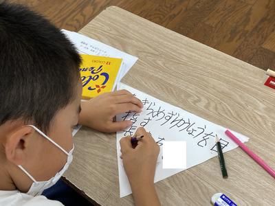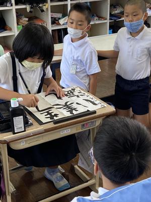 習字で「元気」と書き、みんなに見せてくれました。終わった後に話を聴くと、「緊張した~」と答えてくれました^^!全員は紹介できませんが何人か紹介します。