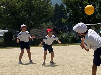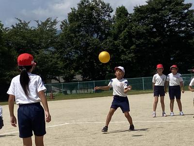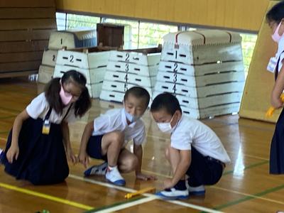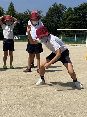 かたや、背筋を伸ばし、気合いを入れて後ろに放りなげる支援学級担任の先生!日頃の2人の先生方の様子とのギャップに低学年部の先生方には大笑いされていたようです^^!どうでもいい、うちわネタで申し訳ありません;;。