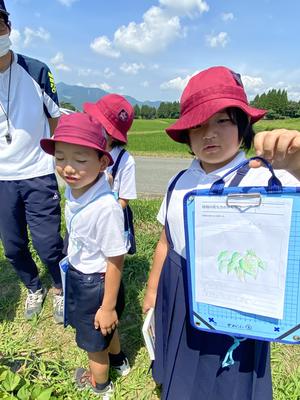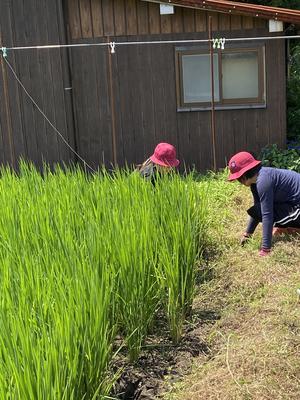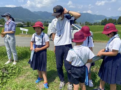 梅雨が明けた炎天下の午後、6年生は田んぼの草取り?(観察?)に行ってきました。