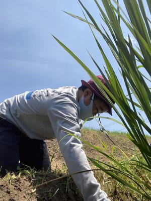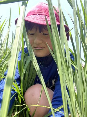 6時間目が水泳のために水着で行っているため、稲の葉が肌に当たるため中に入るのは難しい~。