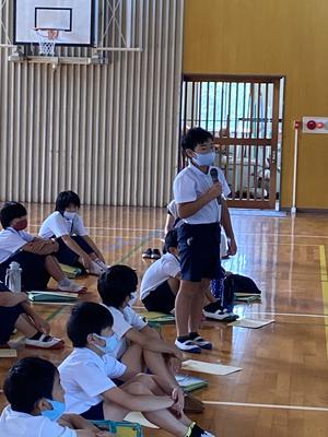 もらったメッセージの紙を掲げながら、「校長先生は、こんなメッセージをくれるなんて親切だなと思いました。」などそれぞれが思ったことを伝えていました。まるで卒業式の呼びかけのようでした。