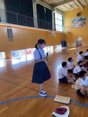 業間の時間には、全校集会でみんなへも紹介しました。みんなので前でも堂々と自己紹介ができました^^!